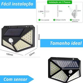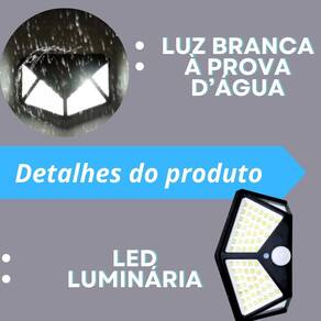 Luminária energia solar 100 led luz branca - garagem, jardim