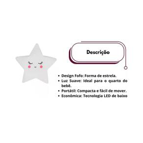 Design encantador em formato de estrela. Luz amarela suave e relaxante. Material seguro e durável. Fácil de usar com interruptor de toque. Portátil e livre de fios, funciona com pilhas. Perfeita para decoração de quartos infantis. Ideal para leitura noturna de histórias. Ajuda a criança a dormir tranquila e sem medo do escuro. Presente perfeito para ocasiões especiais. Cria uma atmosfera mágica e divertida.