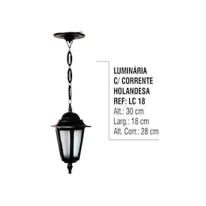 Luminária Externa e Interna Holandesa Com Corrente Alumínio