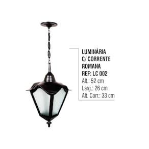 01 Luminária Externa e Interna Romana Com Corrente em Alumínio