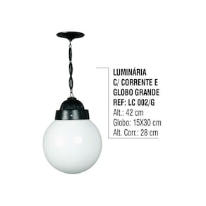 01 Luminária Externa Interna Globo Grande Com Corrente Alumínio
