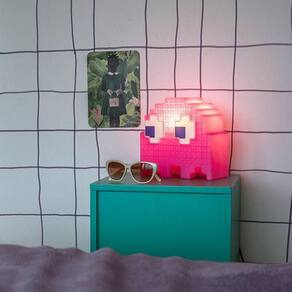 Luminária Fantasma PACMAN Rosa A Luminária Fantasminha é um licenciamento exclusivo do clássico game Pacman, ícone dos anos 80 e 90. E esse fantasminha aqui é o Pacman Rosa. Fofo, divertido e incrível, pra ganhar muitos pontos na decoração ou no presente. Características:-marca: Usare-modelo: Pacman Rosa Especificações:-voltagem: 110v ou 220v;-dimensões (Aproximadamente): 27x28x11cm (altura x largura x profundidade);-material: Polietileno;-cabo com interruptor medindo 1,8 m; -utiliza lâmpada fluorescente compacta de até 15W (não inclusa). Ademais, aceita alguns tamanhos de lâmpada LED, que passem pela abertura. Conteúdo da embalagem: -01 Luminária. Garantia:3 meses contra defeitos de fabricação. Informações importantes:Imagens meramente ilustrativas;A garantia não abrange mal uso do produto;Lâmpada NÃO inclusa no valor anunciado;Todo e qualquer conteúdo esta sujeito a atualizações pertinentes.