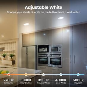 - ? Selecione a cor com o toque de um interruptor de luz – Com uma seleção exclusiva de temperatura de cor, essas luzes LED permitem que você ajuste facilmente a cor da luz (3000K, 3500K, 4000K, 5000K e 6500K) com apenas um toque do interruptor de luz. Perfeito para personalizar o ambiente do seu espaço para qualquer ocasião ou tarefa.
