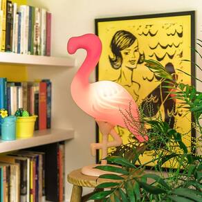 A Luminária Flamingo Summer Bird vai roubar a cena em qualquer espaço onde for instalada. É uma luminária de chão, que fica também muito charmosa em cima de um banco.