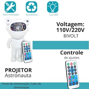 5 o que está incluído na embalagem R: a embalagem inclui a lâmpada de projeção de astronauta, cabo de alimentação, controle remoto e manual de instruções. Marca: Não Informado