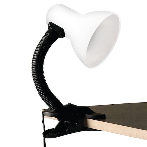 Luminária garra abajur de mesa presilha articulada branco Luminária de mesa abajur com presilha de encaixe cupula branca -peça unica; -cupula branca; -luminosidade e conforto necessário; -ideal para desempenho de tarefas minunciosas; -ideal para mesas de manicure e designer de unhas/alongamentos; -ideal para mesa de escritório e home oficce; -ideal para espaços de leituras; -ideal para ambientes urbanos e descontraídos; -com presilha para encaixar na mesa; -abertura máxima da presilha de 5cm; -com haste flexível para movimentação da cúpula; -foco direcionável; -127/220v; -para uso com lâmpada não inclusa fluorescente; -soquete rosca e27; -altura total de 28cm; -haste com 10cm; -presilha com 12cm; -cúpula com 11cm de diâmetro; -fio com 87cm; -tomada com 2 pinos; -fabricado na china.