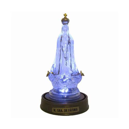 Detalhes: 13 cm de altura; 7 cm de diâmetro; Base de Plástico na cor ouro envelhecido; Imagem de acrílico; Detalhes dourados; LED na cor Azul; Funciona com 1 bateria, já inclusa.