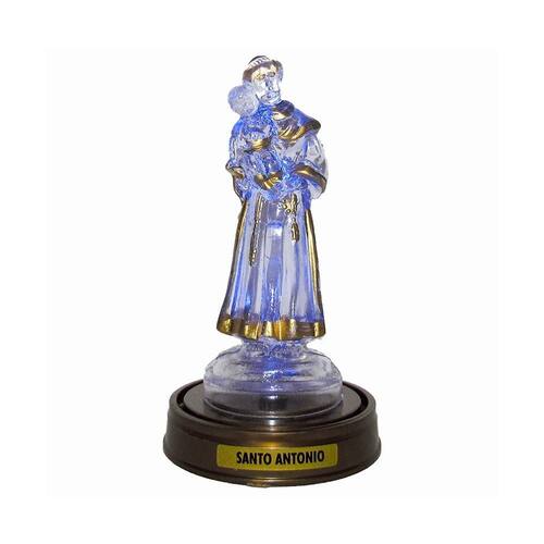 Luminária Imagem Santo Antônio Santo Casamenteiro Padroeiro com Luzes de LED Azul.