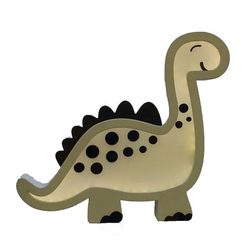 Luminária Infantil Dinossauro Cinza com Preto A Luminária Dinossauro é perfeita para completar a decoração do quarto do bebê, e dá um charme especial e divertido ao ambiente. Fabricada em acrilico e fita de led, a luminária já vem com a bateria inclusa, pronta para ser instalada.