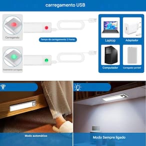 A luminária é compacta e portátil. Fácil de instalar, não precisa de ferramentas, basta colar a fita dupla face que vem na luminária e encaixar aonde precisar de iluminação.