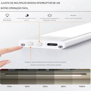 A luminária possui 3 tons de iluminação, Branco Frio, Branco Quente e Branco Misto/Neutro. Para trocar a tonalidade basta pressionar levemente o botão de configuração. Se manter pressionado por segundos, você consegue alterar ajustar o brilho da iluminação, deixando do mais suave ao mais forte.