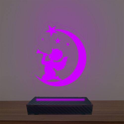 Luminária Led 3d Anjo Na Lua Abajur Luxo - Cor: Roxo