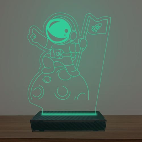 Luminária Led 3d Astronauta na Lua Abajur Luxo - Cor: Verde