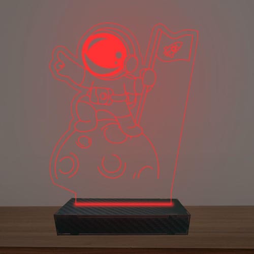 Luminária Led 3d Astronauta na Lua Abajur Luxo - Cor: Vermelho