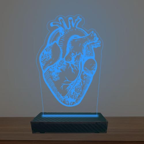 Luminária Led 3d Coração Anatomia Abajur Luxo - Cor: Azul