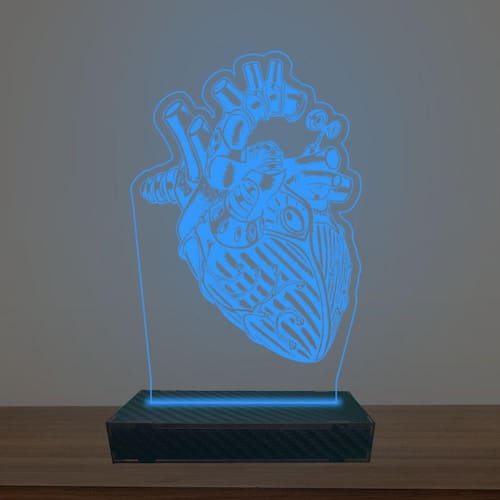 Luminária Led 3d Coração Mecânico Abajur Luxo - Cor: Azul