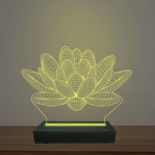 Luminária Led 3d Flor de Lotus Abajur Luxo - Cor: Amarelo