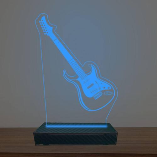 Luminária Led 3d Guitarra Abajur Luxo - Cor: Azul