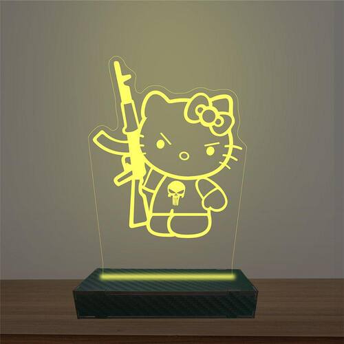 Luminária Led 3d Hello Kitty Abajur Luxo - Cor: Amarelo