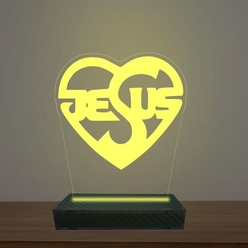 Luminária Led 3d Jesus Coração Abajur Luxo - Cor: Amarelo