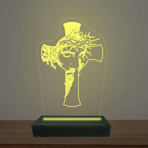 Luminária Led 3d Jesus Na Cruz Abajur Luxo - Cor: Amarelo