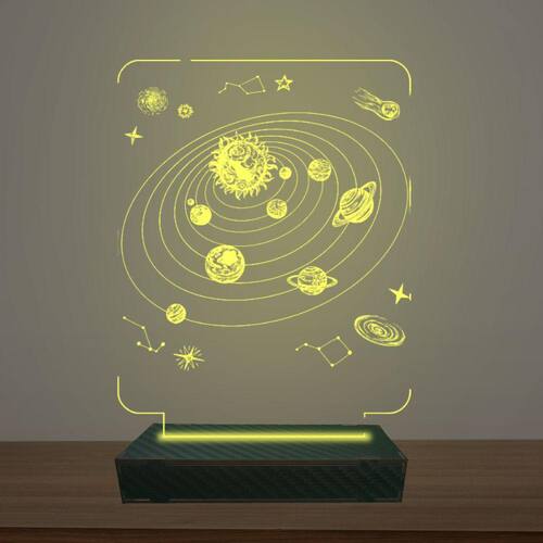 Luminária Led 3d Sistema Solar Abajur Luxo - Cor: Amarelo
