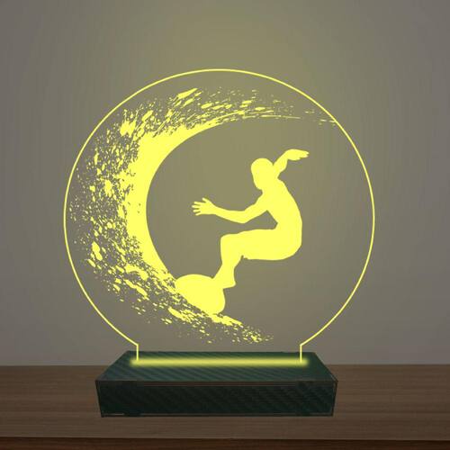 Luminária Led 3d Surfista Abajur Luxo - Cor: Amarelo
