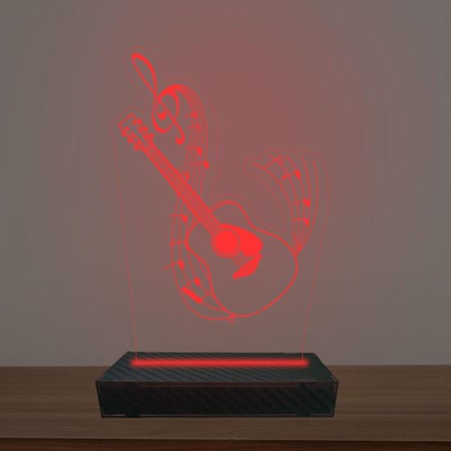 Luminária Led 3d Violão na Clave de Sol Abajur Luxo - Cor: Vermelho