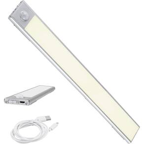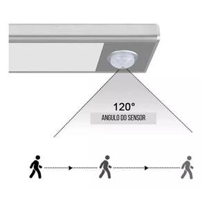 Luminária Luz Led Sensor de Presença Recarregavel Em Alumínio DESCRIÇÃO A luminária é excelente para colocar em Guarda-Roupas, Cômodas, Armário de Cozinha, Escadas e outros. Ela é recarregável e possui sensor de movimento. Pode ser utilizada sempre ligada, desligada ou somente quando detectar o movimento. CARACTERÍSTICAS Bateria: 1800mA Potência: 3W Alimentação: 5V Cor Da Luz: 4000k Branco Neutro Ângulo: 120º Distância Máx De Sensibilidade: Aproximadamente 3m Tempo de Delay: 18s Material: Plástico e Alumínio Peso Aproximado: 230g Dimensões: 40 ou 60 x 4 x 1cm Instalação: Fita Dupla Face com suporte para fácil remoção. O suporte fica preso ao móvel e você pode remover a luminária facilmente para recarregar ou utiliza-la em outro local. ACOMPANHA 1x Luminária com Sensor 40cm ou 60cm 1x Cabo para Carregamento: USB 2x Suportes de Encaixe Com Dupla Face Adequado para quartos, guarda roupas, estantes, corredores, escadas e outros espaços que necessitem de iluminação. A luz se apaga após 18 segundos após não capitar mais movimento no sensor. Marca: Kadê
