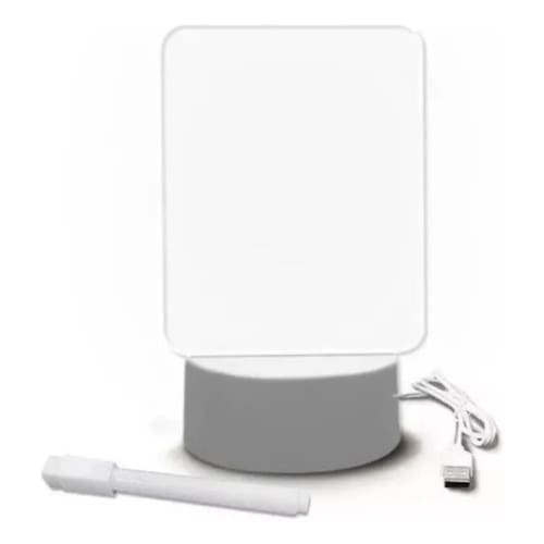 Luminária 3D de LED para Escrever Mensagem e Anotações com Caneta na Lousa e Quadro de Mesa Art House DESCRIÇÃO DO PRODUTO: Com o Quadro Luminária LED você pode deixar mensagens para iluminar e decorar seu ambiente. Ideal para escrever anotações e mensagens, ou fazer lindos desenhos que receptam a luz da base fazendo efeito de luz surpreendente. Sua luz é Branca Quente tornando o ambiente mais confortável e aconchegante, com placa retangular de acrílico. Acompanha uma caneta que pode ser apagada de forma simples. Também pode ser como decoração de casa, quarto, mesa, lâmpada da sala de estar. A luminária de mesa é mais do que uma simples enfeite, é uma ferramenta versátil e inovadora que se adapta perfeitamente ao seu estilo de vida agitado e criativo. Com um design elegante e funcional, ela proporciona uma iluminação suave e agradável, além de recursos únicos que tornam sua experiência ainda mais especial. BENEFÍCIOS DO PRODUTO: - Facilita a visualização de anotações em ambientes com pouca iluminação. - Reduz o cansaço visual ao oferecer uma iluminação suave e personalizável. - Promove a organização e a clareza das informações exibidas. - Permite a personalização das mensagens exibidas no quadro de LED. - Ideal para uso em ambientes educacionais, escritórios e residências. - Contribui para a redução do desperdício de papel, incentivando anotações digitais. - Funciona como uma ferramenta versátil para comunicação visual instantânea. ESPECIFICAÇÕES: - Modelo: Quadro Luminária LED Acrílico Retrato - Material: Plástico, Acrílico, Componentes Elétricos - Cor da Base: Branco - Cor da Luz: Branco Quente - Entrada de Energia: 110v/220v USB - Dimensões Aprox.: 17,5cm Altura X 10,5cm Largura X 9,5cm Diâmetro da Base - Peso Aprox.: 120g - Tamanho do Cabo: 90cm - Material: Plástico ABS e Acrílico - Tamanho aproximado: 17cm x 10cm x 8,5cm - Luz Amarela - Alimentação: USB cabo incluso ITENS INCLUSOS: - 1 Placa de Acrílico - 1 Base Luminária - 1 Caneta Apagável - 1 Tecido Microfibra - 1 Base - 1 Tela Para Escrita - 1 Caneta de Giz Líquido Marca: Não Informado