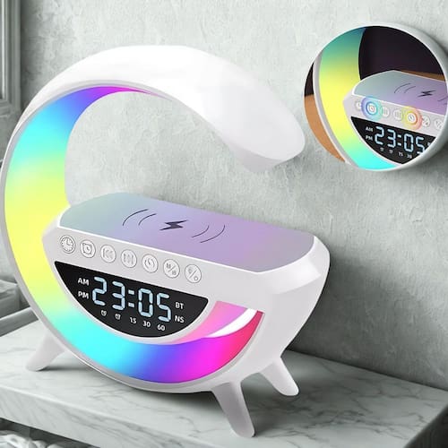Luminária led hi-tech com bluetooth e recarga sem fio Descrição do anúncio: Luminária bluetooth com carregamento sem fio - sua companhia perfeita Encontre a solução perfeita para seus problemas de iluminação e entretenimento com nossa luminária bluetooth 3 em 1. Relaxe com a luz suave enquanto desfruta de suas músicas favoritas via bluetooth. Carregue seu smartphone sem fio via indução e personalize o ambiente com 7 modos de iluminação. Adquira agora e transforme seus momentos com luz, música e praticidade
