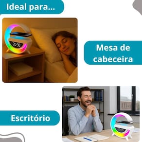 Principais perguntas sobre o produto e respostas: Este produto funciona com dispositivos android e ios Sim, o carregamento por indução é compatível com dispositivos android e ios para aparelhos em que a função esteja disponível Quantos modos de iluminação este dispositivo possuiEle possui 7 modos de iluminação diferentes. A luminária tem rádio fmSim, a luminária inclui rádio fm para mais opções de entretenimento. Quanto tempo dura a bateriaA duração da bateria depende do uso, mas possui uma longa duração em modo standby. É necessário usar pilhas para este dispositivo não, este modelo possui bateria interna recarregável e acompanha cabo usb tipo c para carregamento. Qual é a distância máxima de transmissão do bluetoothA distância máxima de transmissão do bluetooth é aproximadamente 10 metros. Marca: Não Informado