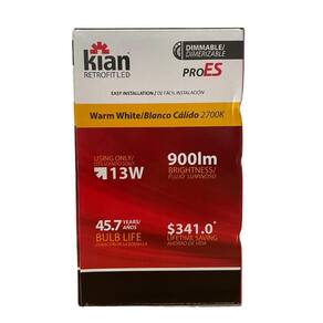 A Luminária LED Kian Retrofit PRO ES 13W oferece iluminação eficiente, aconchegante e de longa durabilidade. Com fluxo luminoso de 900 lm, luz quente de 2700K e IRC 90, proporciona ambientes confortáveis com excelente fidelidade de cores. Substitui lâmpadas tradicionais de até 75W usando apenas 13W, proporcionando economia contínua.