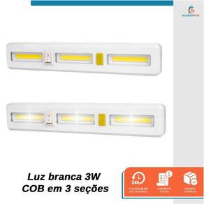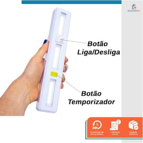 Características: Luz branca 3W COB em 3 seções: garante ótima iluminação em diferentes áreas. Temporizador de 1 minuto: desliga automaticamente após 1 minuto, evitando o desperdício de pilhas. Pontos de imã e furos para suporte: facilitam a fixação em diversas superfícies. Corpo em plástico ABS: resistente e durável. Funções: liga - desliga: controle simples e intuitivo. Pilha 4XAAA (não acompanha). Ref.: 7101147 Marca: Starfer