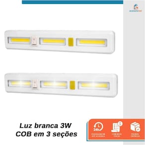 Características: Luz branca 3W COB em 3 seções: garante ótima iluminação em diferentes áreas. Temporizador de 1 minuto: desliga automaticamente após 1 minuto, evitando o desperdício de pilhas. Pontos de imã e furos para suporte: facilitam a fixação em diversas superfícies. Corpo em plástico ABS: resistente e durável. Funções: liga - desliga: controle simples e intuitivo. Pilha 4XAAA não acompanha . Ref.: 7101147 Marca: Starfer