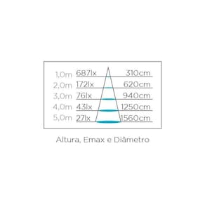 Tensão: 100-240v Fator de potência: 0,9 Corrente: 0,19a(127v) / 0,12a(220v) Fluxo luminoso 3000k: 1700lm Fluxo luminoso 4000k: 1730lm Eficiência luminosa 3000k: 71lm/w Eficiência luminosa 4000k: 72lm/w Ângulo de abertura: 120° Irc: 80 Vida útil (l70): 25.000h Temp. De operação: 10°c ~ 40°c Garantia: 2 anos Material predominante: policarbonato