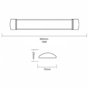 dimensões axlxp cm : 60 x 7,5 x 2,3 produzido em: plástico de engenharia, alumínio, placa de circuito impresso e componentes eletrônicos voltagem: bivolt utilizado tanto em 110v como em 220v cor acabamento: branco potência: 18w fluxo luminoso: 1. 350 lumens eficiência luminosa: 75 lm/w cor do cabo: branco irc: 80 potência máxima por soquete : 18w ângulo de abertura: 180 para uso em soquete: led já integrado, não se utiliza soquete formato: retangular garantia: 1 ano junto ao fabricante aplicação: sobrepor vida útil: 20. 000 horas acompanha lâmpada: não necessita, led já integrado grau de proteção: ip20 ajuste de intensidade dimerizar : não