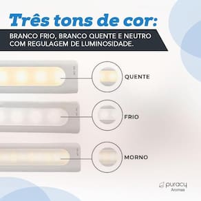 R: A luminária possui um consumo de energia de apenas 3W para luz branca, 3W para luz quente e 4,5W para luz branca e quente.