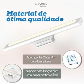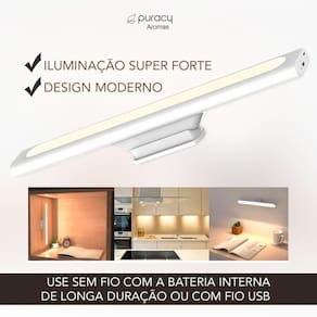 Sua instalação é extremamente simples e rápida, basta fixar a base com o imã em qualquer superfície metálica e conectar a luminária à base. Além disso, ela acompanha um cabo USB para recarregar sua bateria integrada de 1200mAh, que possui um tempo de carregamento de apenas 3 horas.