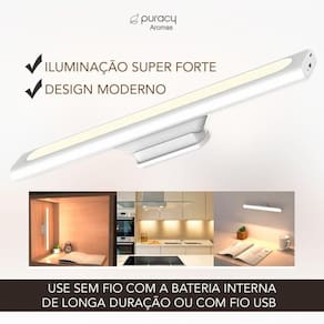 Luminária led com bateria interna de longa duração + muito pratica, portátil Adesivo de dupla face para fixar a luz em qualquer lugar que você queira iluminar + barra spot recarregável s/ fio cozinha armário + Tempo de iluminação: branco ou quente: 2 h / branco e quente: 1,5 h Ideal para: armários, prateleiras, escrivaninha, cozinha e locais com pouca iluminação... Pode controlar a temperatura da cor na entre 2555k e 6500k, Carregador com conexão micro usb, acompanha cabo micro usb É leve e de fácil transporte, possibilitando que a luminária portátil seja transportada, com facilidade, para qualquer lugar.