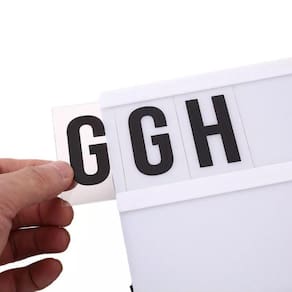 Luminária led lightbox cinema a4 + 181 letras e números Coloque suas mensagens pessoais no centro das atenções com esta caixa de luz. São três painéis para inserir letras, ícones ou símbolos, permitindo que você coloque a frase que você quiser ou exiba seus ícones favoritos.