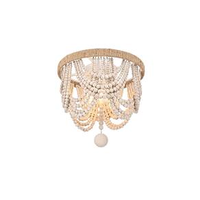 - A distinta coroa enrolada em corda cria uma estrutura rústica e luxuosa para contas de madeira em cascata.