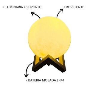 Projetada com tecnologia de impressão 3D, reproduz com fidelidade os detalhes da superfície lunar, criando um efeito visual cativante e elegante. A luz amarela proporciona uma iluminação quente e relaxante, ideal para uso em quartos, salas, escritórios ou espaços de meditação.