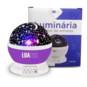 A projeção alcança o teto do quarto Sim, alcança Como faço para usar como abajur Para usar somente como abajur, é só deixar a tampa branca em cima. Dessa forma ficará apenas como abajur. E quando quiser, só retirar a tampa branca, e vai refletir na parede. A projeção fica somente parada Não, pode ser tanto parada quanto em rotação Como ela funciona Por cabo usb, voce pode usar a fonte usb do seu celular conectando a porta usb. Palavras chaves mais pesquisadas:
