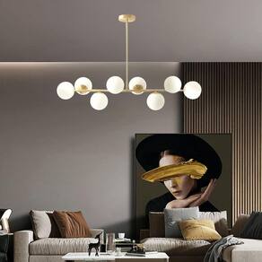 Luminária Lustre 8 Globos 110cm x 72cm Jabuticaba Pendente Teto Gimpo KJDD-E-547-GOLD-Milky-8.