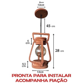 - diâmetro 13cm - tamanho lampião 28 cm - peso do produto 2 kg - bocais 1 - kit sim