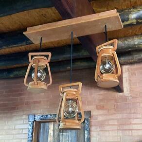 Bem vindo Crie inove e encante!A nossa linha de Moveis não para de crescer e agora traz para você, esta linda peça para organizar diversos ambientes da casa.Esta peça com certeza vai deixar a sua casa mais bonita!Luminária Lampião RUSTICO, fabricado em MDF e pintado a Mão. Envernizado deixando um acabamento envelhecido perfeito.Bom para iluminar e decorar ambientes como áreas de garagem, churrasco, garagens com bar, casa, chácara decorar festas, lanchonetes, casa de campo, pousadas.:::Especificações Técnica:::::: ACOMPANHA FIAÇÃO :::::: ACOMPANHA FIAÇÃO :::: CARACTERÍSTICAS:- Marca: Eco.Start E-commerce- Dimensões:- Diâmetro 13cm - Tamanho Lampião 28cm - Base do Teto 68cm- Peso do Produto 2 kg- Bocais 3- kit NÃO- Material: MDF (MEDIUM DENSITY FIBERBOARD)- MDF Ecologicamente Correto com Certificado FSC de alta qualidade- Cor: Mogno, Tabalo- Nível de Instalação: Fácil- Garantia de 90 dias Contra Defeitos de Fabricação:::CONTEÚDO DA EMBALAGEM:::- Ganchos SIM- Soquetes SIM- Base para Teto SIM- Fios SIM 45cm regulável - Lâmpadas NÃO:::ATENÇÃO:::OBS: Fazemos em tamanhos personalizados também. Consulte-nos!Todos os nossos produtos são feitos à mão e nos esforçamos para lhe entregar o mais rápido possível.:::SOBRE A COMPRA::::Envio:O prazo começa a contar após a aprovação da compra.Será enviado código de rastreio logo após a postagem do produto.:::ANTES DE COMPRARTire todas as suas dúvidas no campo perguntas e respostas do vendedor.* Os objetos decorativos não acompanham o produto*Fique à vontade para nos fazer perguntas.PERGUNTAS FREQUENTESOS PRODUTOS SÃO NOVOS?Sim! Todos os nossos produtos são novos.OS PRODUTOS TÊM GARANTIA?Sim, todos os nossos produtos têm garantia de fábrica. (3 meses)QUAL A VOLTAGEM?A voltagem depende da lâmpada 100/220 vACOMPANHA AS LAMPADAS?As lâmpadas não acompanha o produtoAguardamos sua um compra, é sempre prazer atendê-los Marca: Eco.Start e-commerce