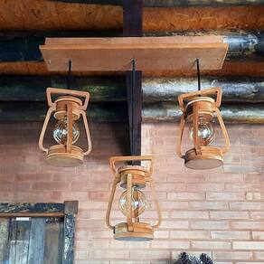 Luminária lustre pendente 3 lampião 3 peças 110/220 v Crie inove e encante A nossa linha de moveis não para de crescer e agora traz para você, esta linda peça para organizar diversos ambientes da casa. Esta peça com certeza vai deixar a sua casa mais bonita Luminária lampião rustico, fabricado em mdf e pintado a mão. Envernizado deixando um acabamento envelhecido perfeito. Bom para iluminar e decorar ambientes como áreas de garagem, churrasco, garagens com bar, casa, chácara decorar festas, lanchonetes, casa de campo, pousadas. :::especificações técnica::: ::: acompanha fiação ::: ::: acompanha fiação ::: : características: - dimensões: - diâmetro 13cm - tamanho lampião 28cm - base do teto 68cm - peso do produto 2 kg - bocais 3 - kit sim - material: mdf medium density fiberboard - mdf ecologicamente correto com certificado fsc de alta qualidade - cor: mogno, tabalo - nível de instalação: fácil - de 90 dias contra defeitos de fabricação :::conteúdo da embalagem::: - ganchos sim - soquetes sim - base para teto sim - fios sim 45cm regulável - lâmpadas não :::atenção::: Obs: fazemos em tamanhos personalizados também. Consulte-nos Todos os nossos produtos são feitos à mão e nos esforçamos para lhe entregar o mais rápido possível. :::sobre a compra::: O prazo começa a contar após a aprovação da compra. Será enviado código de rastreio logo após a postagem do produto. :::antes de comprar Tire todas as suas dúvidas no campo perguntas e respostas do vendedor. Os objetos decorativos não acompanham o produto Fique à vontade para nos fazer perguntas. Os produtos são novos Sim todos os nossos produtos são novos. Os produtos têm Sim, todos os nossos produtos têm de fábrica. 3 meses Qual a voltagem A voltagem depende da lâmpada 100/220 v Acompanha as lampadas As lâmpadas não acompanha o produto Aguardamos sua um compra, é sempre prazer atendê-los Marca: Não Informado