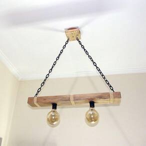 Bem vindo Crie inove e encante! A nossa linha de Moveis não para de crescer e agora traz para você, está linda peça para organizar diversos ambientes da casa.Esta peça com certeza vai deixar a sua casa mais bonita! Luminária Lustre Pendente Rústico Retro Madeira 65CM, fabricado em MDF e pintado à Mão. Envernizado deixando um acabamento envelhecido perfeito.Bom para iluminar e decorar ambientes como áreas de garagem, churrasco, garagens com bar, casa, chácara decorar festas, lanchonetes, casa de campo, pousadas. :::Especificações Técnica:::::: ACOMPANHA FIAÇÃO :::: CARACTERÍSTICAS: - Dimensões:- Marca: Eco.Start e-commerce - Dimensões: - COMPRIMENTO 65 cm - LARGURA 10 cm - ALTURA 10 cm - Peso do Produto 2 kg - Bocais 2 - Material: Pinus- MDF Ecologicamente Correto com Certificado FSC de alta qualidade- Cor: Pinus- Nível de Instalação: Fácil- Garantia de 90 dias Contra Defeitos de Fabricação:::CONTEÚDO DA EMBALAGEM::: - Ganchos SIM- Soquetes SIM- Base para Teto SIM- Fios SIM - Lâmpadas NÃO * Os objetos decorativos não acompanham o produto*PERGUNTAS FREQUENTESOS PRODUTOS SÃO NOVOS?Sim! Todos os nossos produtos são novos.OS PRODUTOS TÊM GARANTIA? Sim, todos os nossos produtos têm garantia de fábrica. (3 meses) QUAL A VOLTAGEM?A voltagem depende da lâmpada 100/220 vACOMPANHA AS LAMPADAS?As lâmpadas não acompanha o produtoAguardamos sua um compra, é sempre prazer atendê-los Marca: Eco.Start e-commerce