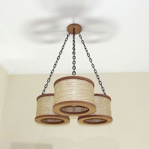 Bem vindo Crie inove e encante! A nossa linha de Moveis não para de crescer e agora traz para você, está linda peça para organizar diversos ambientes da casa.Esta peça com certeza vai deixar a sua casa mais bonita! Luminária Lustre Pendente Rústico Retro Madeira Sisal 60 cm , fabricado em MDF e pintado à Mão. Envernizado deixando um acabamento envelhecido perfeito.Bom para iluminar e decorar ambientes como áreas de garagem, churrasco, garagens com bar, casa, chácara decorar festas, lanchonetes, casa de campo, pousadas. :::Especificações Técnica:::::: ACOMPANHA FIAÇÃO :::: CARACTERÍSTICAS: - Dimensões:- Marca: Eco.Start e-commerce - Dimensões:  - 60X60 cm - Peso do Produto 2 kg - Altura 17 cm  - Bocais 3 - Material: MDF (MEDIUM DENSITY FIBERBOARD)- MDF Ecologicamente Correto com Certificado FSC de alta qualidade- Cor: Mogno, Tabalo- Nível de Instalação: Fácil- Garantia de 90 dias Contra Defeitos de Fabricação:::CONTEÚDO DA EMBALAGEM::: - Ganchos SIM- Soquetes SIM- Base para Teto SIM- Fios SIM - Lâmpadas NÃO * Os objetos decorativos não acompanham o produto*PERGUNTAS FREQUENTESOS PRODUTOS SÃO NOVOS?Sim! Todos os nossos produtos são novos.OS PRODUTOS TÊM GARANTIA? Sim, todos os nossos produtos têm garantia de fábrica. (3 meses) QUAL A VOLTAGEM?A voltagem depende da lâmpada 100/220 vACOMPANHA AS LAMPADAS?As lâmpadas não acompanha o produtoAguardamos sua um compra, é sempre prazer atendê-los